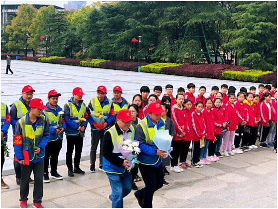 4月4日上午,中建三局二公司黄石新港大道北延道路工程EPC项目部同阳新县大王初级中学的孩子们一起,来到位于黄石市阳新县的湘鄂赣边区鄂东南革命烈士陵园开展公祭联建活动,新港大道项目党员、团员代表及大王中学的老师和同学们共计100余人参加了此次活动。 上午9时30分,公祭活动正式开始,现场气氛庄严肃穆。陵园工作人员详细介绍了阳新“二·二七”惨案殉难的九位烈士的感人事迹,大家认真聆听,心情沉重。在烈士纪念碑前,全体人员神情肃穆,集体默哀一分钟,缅怀先辈壮举,寄托无限哀思,两名学生代表向革命先烈敬献了花圈。接着,项目职工和学校师生逐一向烈士敬献鲜花,并三鞠躬。 祭扫完毕后,项目党支部书记带领全体党员在鲜红的党旗下重温入党誓词,学校团委老师带领全体同学在明艳的团旗下庄严宣誓。大家神情坚毅,字字铿锵。随后,项目职工向学生和老师们派发了《廉洁过清明倡议书》,呼吁大家文明祭祀、生态祭祀、安全祭祀,让清明更“清明”。