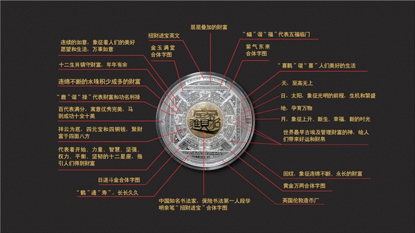 在中国这片古老而神奇的大地上,孕育了灿烂悠久的历史文明,千百年来经久不衰、澎湃不息。招财进宝合体字,正是从中华文明中衍生出的一种民俗文化,象征着财源广进、招财聚财等美好寓意,凝结着中国人民的智慧与底蕴。千百年来,不仅影响着中华儿女的生活作息,同时也推动着人类文明的形成与发展。 为促进中英两国文化交流、传承和弘扬世界人民间的优秀文明底蕴,同时,在2020年新型冠状病毒疫情迅速蔓延全球、让世界经济陷入深度衰退的萧条背景之下,为世界人民祈福纳祥、以文化为载体带动经济复苏,英国伦敦造币有限公司面向全球特别发行了《招财进宝纪念币》。 纪念币图片展示 据悉,《招财进宝纪念币》面值为100£,圆形形制,正面图案采用中国传统文化“招财进宝”合体字,与世界36种代表财富的图案相结合,其中包括天、地、日、月、福、禄、寿、喜、生肖、星座、水、鱼、财宝、古希腊最早掌管财富的女神、黃金万两、紫气东来、日进斗金等。背面则由2020年伊丽莎白二世招财进宝英文(2020 ELIZABETH Ⅱ AMASS FORTUNES)环绕日进斗金英文字样(MAKE FAST MONEY),江河湖海聚天地之水,融世界之财,四种钱币符号代表财富连绵不断和增加聚财的力量。 纪念币寓意详解 《招财进宝纪念币》全球限量发行50000套,可谓是将中国传统文化与英国钱币文化完美融合的载体,同时蕴含了星座、生肖、五福、古希腊财富女神等世界各地的吉祥元素。该纪念币设计精美、寓意美好,所表现的财富文化丰富、广博,象征着财源广进、八方来财等美好寓意。 (免责声明:文章内容为本站转载,不代表本站的观点和立场,内容仅供交流和参考。) |