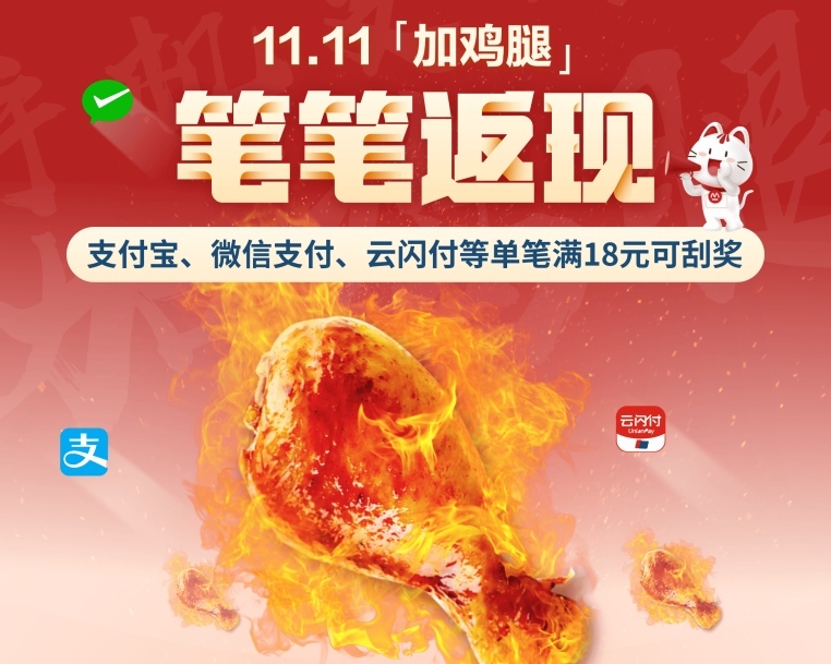 今年双11迎来第13个年头,火爆程度依旧不减往年,但不同于以往“盖楼”、比拼社交关系,今年最热闹的当属直播间:李佳琦、薇娅1天销售近200亿元,边看直播边把预售商品加入购物车已成为消费者的共同“姿态”。双11除了购物之外,已演变成一场全民的狂欢。 伴随双11预售开启的火爆,招商银行信用卡年度重磅活动11.11“加鸡腿”今年再度来袭,参与方式与往届一样简单直接,每完成一笔满18元的交易,即可在掌上生活App领取消费金,在下一笔满足抵用要求的手机支付交易时自动抵扣。有消费者表示,双11期间,尽管各大电商平台推出了不少购物补贴、折扣活动,但自己更关心的是大额消费后如何直接现金抵扣、快速“回血”,11.11“加鸡腿”活动可谓是一份“双11”剁手回血指南。 全网购物笔笔返现,最高返11111元 招行信用卡11.11“加鸡腿”活动规则极简:10月20日至11月30日活动期间,全网购物笔笔返现,刮奖时100%中奖,最高返11111元,每人获得返现机会多达100次。无论在天猫、京东、拼多多、唯品会,还是盒马、携程、抖音电商、快手电商等下单,只要手机支付绑定并使用招行信用卡单笔消费满18元,就能前往掌上生活App搜索“笔笔返现加鸡腿”,刮取消费金,所获的消费金无需额外操作,将在下一笔满足抵用要求的手机支付交易时自动抵扣。 据了解,此次“加鸡腿”获取渠道极多,支付环境覆盖了当下消费生活所涉及的各类主流电商,包括支付宝、微信支付、云闪付、美团支付、京东支付、一网通支付等,用户可随时切换场景随时使用,无需改变支付习惯,在11.11购物狂欢结束后,还有半个多月的时间可继续“加鸡腿”。同时,此次“加鸡腿”活动中还增加了新玩法,可以一键连刮5次,再也不担心刮奖次数太多刮不完了!