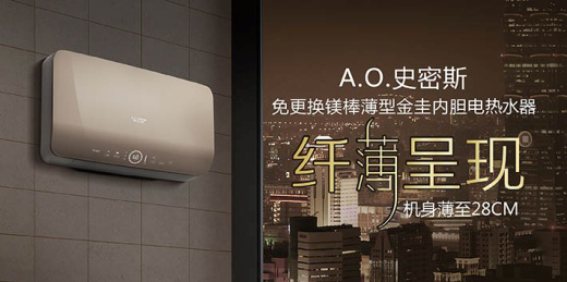 进入中国20年来,A.O.史密斯的领先已不止体现在热水器领域,在净水、采暖、空气净化等领域也已全面领衔,产品涵盖电热水器、燃气热水器、净水机、空气净化器、壁挂炉、空气能热水器、洗脸软水机等品类。 同时,A.O.史密斯的每年所带来的产品都成为当年的主流趋势,不仅全方位满足消费者的品质健康生活需求,同时推动家电及热水器行业得以快速升级。此次当选“行业健康品牌”可谓实至名归。 颜值、性能双双领先,A.O.史密斯薄型金圭内胆电热水器受瞩目 此次获奖的A.O.史密斯薄型金圭内胆电热水器可谓颠覆传统,整机薄至28CM,选用世界先进的高效VIP真空隔热层,在确保保温性能的前提下将保温层厚度减薄至一半。