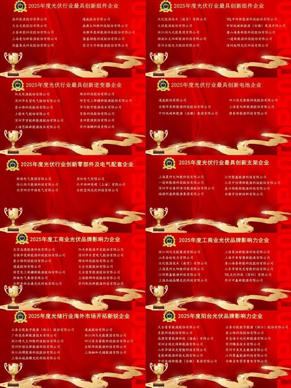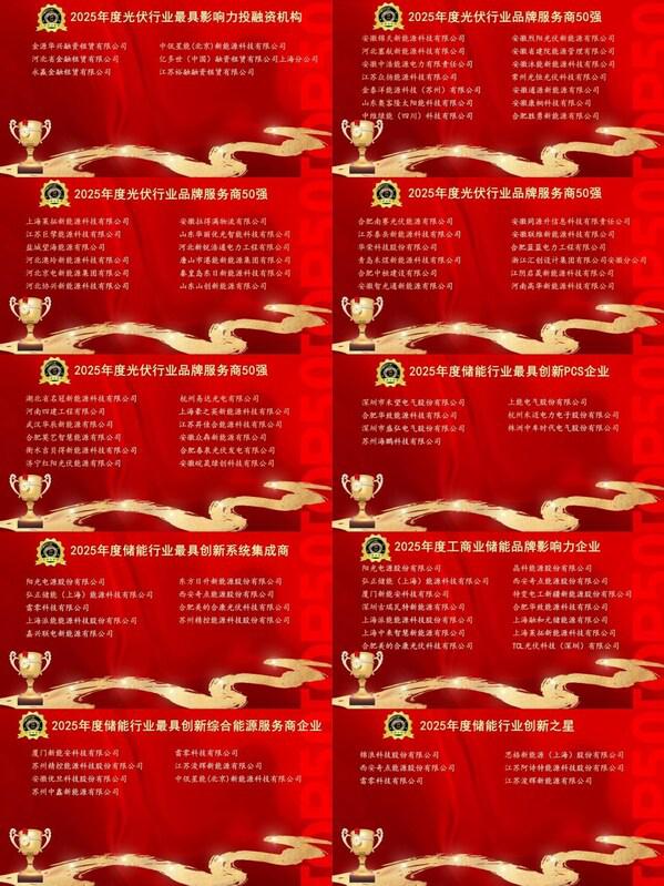 光储新纪元,群星耀江淮。 2025年11月6日,由光伏产业网、储能产业网主办的「PV TOP 5O」光伏创新榜&「ES TOP 50」储能创新榜颁奖典礼在安徽合肥隆重启幕。 本届盛会汇聚了光储领域的著名专家学者、领军企业代表及行业精英,共同见证"2025年度光伏行业最具创新组件企业"、"2025年度光伏行业最具创新逆变器企业"、"2025年度光伏行业最具创新电池企业"、"2025年度光储行业海外市场开拓新锐企业"、"2025年度阳台光伏品牌影响力企业"、"2025年度储能行业最具创新PCS企业"、"2025年度储能行业最具创新系统集成商"、"2025年度工商业储能品牌影响力企业"等重磅奖项的揭晓。 自2016年首次举办以来,「TOP 50」光储创新榜已深耕十年,成功举办至第十届,历经沉淀,已成为行业内极具影响力的评选榜单,发榜至今吸引了众多行业人的广泛关注。该榜单不仅是对企业创新成果的高度认可,更为产业链各环节的协同发展提供了重要契机,成为推动光储融合规模化应用的关键平台。 在"双碳"目标引领和全球能源结构加速转型的浪潮下,「TOP 50」光储创新榜紧扣光伏与储能这两大关键力量,旨在表彰在技术研发、产品创新与商业模式等方面表现突出的标杆企业。此举旨在以榜样之力,凝聚产业合力,共同为高质量发展聚合澎湃动能,携手开启光储生态系统协同共荣的新篇章。 群英荟萃,共铸辉煌 榜单自信息征集评选以来,便受到行业同仁的广泛关注与踊跃参与。经过多轮激烈角逐,一批优秀企业脱颖而出,荣膺年度典范。让我们共同见证这一辉煌时刻。(企业排名不分先后) 星辰大海,步履不停 作为绿色能源体系的关键支柱,光伏与储能产业在释放强劲市场动能的同时,也面临着阶段性调整、技术同质化与价格持续承压等多重挑战。破局之道,唯在创新。 当技术革新与产业升级交汇奔涌,每一份坚守与突破都将化作照亮行业前路的星火。 2025「PV TOP 5O」光伏创新榜&「ES TOP 50」储能创新榜的收官不是终点,而是新征程的起点。未来,创新者将继续以科技为舟、以应用为帆,在系统集成、智能运维、商业模式的深水区破浪前行。我们期待,以榜单为媒,凝聚更多产业共识,共同构建安全、高效、开放的全球光储生态,助力中国光储产业不仅走向世界,更引领世界。
