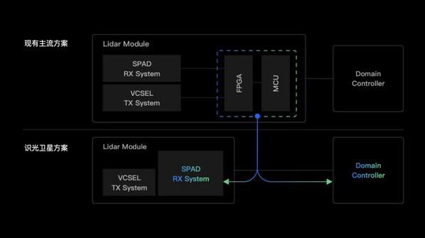 识光发布最新高性能低成本面阵 SPAD-SoC SA100,面向车载与机器人应用。识光始终致力于 3D 感知技术的广泛应用,赋能智慧未来。 SA100 SPAD-SoC 芯片图 核心参数与功能 超灵活 2D 分区 SA100 的分辨率为 480 (H) x 384 (V),支持 1 x 1、2 x 2、4 x 4、2 x 8 等多种 binning 方式,可自定义水平和垂直方向的分区;支持 1D & 2D 扫描,对应模式下的典型分区分别为 12 (H) x 1 (V) 和 24 (H) x 8 (V),适配全固态、转镜等多种激光雷达方案。 典型分区示意图 dToF 激光雷达 + 单光子相机 SA100 支持 1 x 1 binning 灰度图模式输出,分辨率为 480 (H) x 384 (V),是一台高动态范围的单光子相机,可用于微光成像;且 2D 与 3D 数据天然零误差对齐,从而实现 dToF 点云与灰度图的完美融合。 集成化、单芯片化的里程碑产品 SA100 以识光全芯片化技术为基础,一块芯片集成了高性能 BSI SPAD 阵列、高精度时钟采样矩阵(TDC)、单光子测距引擎(TCSPC)、高并发 dToF 感知算法加速器(DSP)、激光雷达控制中心(Lidar Controlling Master)、高速数据接口等关键模块,且形成了 IRE(Intelligent Ranging Engine,智能测距引擎)与 LCM(Lidar Controlling Master,激光雷达控制中心)两个特别的处理单元。 Sophoton SPAD-SoC 系统示意图 更高精度与准度 基于 IRE,SA100 可并行采集处理上千个像素,解决了探测过程中同步、滤波、寻峰、降噪、补偿等问题,提高了数据的信噪比,达到了高精准度、抗多机和环境光干扰等效果。 卫星方案,更低成本 得益于 SA100 的高集成度,识光为激光雷达/自动驾驶解决方案提供了一个降本的新路径,即识光的卫星方案。无需 FPGA / MCU,SA100 SPAD-SoC 即可对激光雷达数据进行片上处理并直接传输给域控,实现算力上移,由域控进行多传感器数据的集中化处理,大幅降低了激光雷达的成本和体积。 识光卫星方案示意图 识光 X CES 2026 识光首次亮相 CES 2026,现场展示 SPAD-SoC 系列产品,包括最新发布的单点 SK103 / SK104、以及基于面阵 SPAD-SoC 的 2D 全固态激光雷达样机,识光始终致力于 3D 感知技术的广泛应用,让好的技术服务到每一个人。 CES 现场展位图
