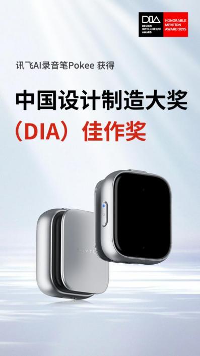 2025中国设计智造大奖(DIA)近日揭晓获奖名单,科大讯飞旗下新款讯飞AI录音笔Pokee以其前瞻的设计理念和领先的技术创新,在众多参赛作品中脱颖而出,获得佳作奖。 中国设计智造大奖素有“中国工业设计奥斯卡”美誉,旨在激发设计与商业领域的创新活力。科大讯飞录音笔Pokee以多形态可佩戴设计为灵感巧思,无缝切换于不同角色:它可以是腕上手表、也可以“化身”成一款时尚挂饰,或是吸附于电脑。这款身量仅22.5g可无处不在的智能记录官,适用于课堂学习、日常小会以及多元场景。 在课堂场景中,Pokee不仅可将课程录音实时转写成文稿,自动标记关键知识点,还能一键生成思维导图,帮助构建系统化知识框架,轻松消化课堂内容。 在多人讨论场景中,Pokee能清晰收录人声,通过AI实时转写并区分不同发言人,自动提炼讨论要点与待办事项,会后一键生成会议纪要并支持共享至协作平台,显著提升效率。 在访谈场景中,Pokee设计灵巧,便于营造轻松氛围,有助于受访者更自然地表达。录音后可标记重点段落,快速导出精华内容,并借助AI摘要功能高效整理成文。 此外,身量轻巧的Pokee还具有强大的功能内核。支持Wi-Fi快传功能,1小时的录音内容最快只需1分钟左右就能传输到手机。所有录音内容自动同步至云端,用户可以通过手机、电脑等多终端随时访问、编辑和分享,对于需要团队协作的项目,这一功能尤为实用。续航能力一直是便携设备的重要考量,Pokee在满电情况下可连续录音25小时,待机时间长达85天。支持快充功能,充电5分钟即可使用2小时,有效避免了关键时刻设备没电的尴尬。 轻巧之下,是专业;记录之后,是洞察。Pokee通过设计、佩戴与AI的融合,实现了从被动记录到主动管理的跨越。它不仅是一件获奖的设计作品,更是适用于多元场景的效率伴侣。