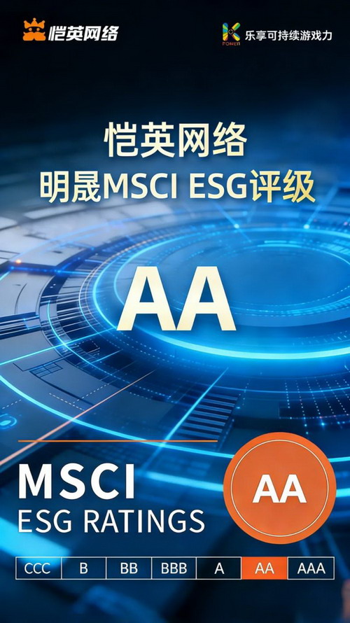 近年来,ESG已成为全球游戏与传媒娱乐行业衡量企业可持续发展、长期价值创造与风险管控能力的核心标尺,MSCI ESG评级更是国际主流机构投资者决策的关键依据。03月23日,国际权威指数机构MSCI(明晟)公布最新ESG评级结果,恺英网络评级由BBB级跨级跃升至AA级,在全球211家传媒娱乐企业中跻身领先梯队,成为中国游戏公司ESG高质量发展的标杆案例。 MSCI ESG评级体系覆盖全球超1.7万家上市主体,AA级代表企业在环境、社会、治理三大维度均达到行业顶尖水平,具备稳健的可持续发展能力与长期投资价值。本次评级报告显示,恺英网络在碳排放、人力资本发展、隐私与数据安全、企业治理、企业行为五大关键议题实现显著提升,充分印证公司可持续发展管理体系的成熟度与实践成效。 自2023年启动“K行动”可持续发展规划以来,恺英网络将ESG理念深度融入研发、发行、运营全链条,构建起系统化、可量化、可落地的责任管理体系: 环境(E):坚定推进绿色低碳转型,落地“K办公”行动,实现PET塑料回收常态化;采购绿色电力证书、租赁绿色数据中心,降低全价值链碳足迹;2025年达成运营层面碳中和,并通过CDP平台定期披露气候与环境数据,信息透明度持续提升。 社会(S):筑牢用户权益保护防线,完善客户服务与投诉机制,强化数据安全与隐私保护,扎实推进未成年人网络保护;健全人才培养与职业发展体系,保障员工权益;打造“恺心公益”“榴萤志愿者”品牌,聚焦青少年教育、乡村振兴、信息无障碍等领域,践行商业向善。 治理(G):以党建引领企业治理,打造“‘橙’心向党”特色党建品牌,实施首席责任官首问责任制;优化董事会运作与激励机制,提升治理效能;发布《2025-2027股东回报规划》,切实维护中小投资者利益,构建规范透明的治理架构。 2025年11月,恺英网络发布《可持续发展规划(2026-2030)》,将“K行动”升级为KPro行动,迭代可持续发展愿景,承诺新一轮ESG量化目标,以“乐享可持续游戏力”为核心,开启下一个五年高质量发展征程。 此次MSCI ESG评级跃升至AA级,既是国际资本市场对恺英网络可持续发展能力的高度认可,也为中国游戏行业ESG实践提供了可复制、可推广的范本。未来,恺英网络在其董事长金锋的带领下,将持续深化ESG战略落地,以环境友好、社会担当、高效治理为支撑,为用户、员工、投资者及社会创造可持续共享价值,助力中国游戏产业迈向全球价值链高端。