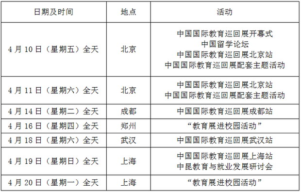 日前,中国(教育部)留学服务中心(以下简称“中心”)于北京国家会议中心举办“2026年(第二十二届)中国留学论坛”暨“2026年(第三十一届)中国国际教育巡回展”,主题定为“开放·协作·共赢:推动留学教育实现可信任、更安全、高质量发展”。巡回展将于4月10日至4月20日期间,依次在北京、成都、郑州、武汉及上海五地举行。 一、2026年(第二十二届)中国留学论坛基本情况 中国留学论坛(CSAF)作为回应社会需求、促进中外教育高水平对话与务实合作的关键平台,自2004年起已连续成功举办二十一届。继2025年首次提出“质量、信任、安全”核心理念并引发广泛共识后,本届论坛将聚焦“可信任、更安全、高质量”三大导向,致力于推动理念转化为实践,与各方共同探索开放协作的共赢发展路径。同时,论坛将集中发布三大研究成果:2026年出国留学环境评价结果、留学人员回国就业数据分析报告,以及中国留学人员创业群体特征与发展规律。通过对环境评价、就业数据与创业特征的全景式分析,旨在为国家政策制定、学术研究创新及市场理性选择提供全方位、高质量的数据支持与智力保障,进而促进多方协同的国际教育良性生态圈构建。 本届论坛获得国内外各界积极响应与高度期待。英国前任教育部大学、科学、研究和创新事务国务大臣乔·约翰逊勋爵、乌兹别克斯坦驻华大使阿尔季耶夫·法尔霍得、哈萨克斯坦等国十余位驻华使节、英国约克大学校长查理·杰弗里教授等数十位海外高校领导、郑州大学校长李蓬院士等数十位国内高校领导,以及来自美国、加拿大、英国、意大利等十余个国家和地区的驻华使节、中外高校代表、教育主管部门代表、全球国际教育领域专家、优秀青年学者代表、留学教育行业从业者及各类参会参展代表,总计千余人将围绕相关议题分享经验、交流观点并凝聚共识。 此外,本届论坛期间,中国留学服务中心将全面展示“留学数智e网通”数字化服务平台2.0版本;正式启动升级版国家留学人员就业服务平台,并同步开启2026年海归专属线上春季招聘活动,以精准对接供需双方;同时,正式启动2026年中美青年创客大赛,旨在激发中美大学生的创新活力。 论坛还将设置多场主题配套研讨活动,议题涵盖“平安留学”保障体系协同构建、留学人才胜任力与就业能力提升、留学与青年创新创业、留学中国品牌建设与双向学生流动、国(境)外学历学位认证标准体系解析、以英语测评视角探索未来留学信任力提升路径,以及国际教育项目高质量协同发展等热点领域。这些研讨旨在推动建立前瞻性与可操作性的长效发展机制,实现服务链与议题链的双重升级。各主题研讨活动将汇聚各方专业人士与机构,打造高水平对话平台。 二、2026年(第三十一届)中国国际教育巡回展办展背景与指导思想 中国国际教育巡回展是由教育部支持与指导、中心主办的年度例行展览。巡回展始终致力于贯彻国家留学方针,宣传解读最新政策及各留学目的国高等教育动态,为拟留学学生及家庭提供及时、全面、专业的海外留学资讯,并为中外高等院校和教育机构搭建展示推介与双向交流合作平台。自1999年首届举办以来,现已成功举办30届,累计吸引来自全球61个国家和地区的近3000所院校及机构参与,足迹遍及国内30多个城市,线下观展人数超过160万人次。长期以来,在教育主管部门的大力支持下,通过各国驻华使(领)馆、国内外院校及专业教育机构的广泛参与与共同努力,教育展获得了社会各界及出国留学人员的一致好评。经过多年实践与品牌积累,中国国际教育巡回展已成为助力学子平安留学、成功留学的重要渠道,引导公众理性留学、推动留学市场规范化发展的重要阵地,以及促进中外教育高水平对话与务实合作的重要平台,吸引了国内外各界的高度关注与热烈反响,成为国内具有广泛影响力的综合性国际教育盛会。 2026年4月10日至4月20日,中心将依次在北京、成都、郑州、武汉和上海举办“2026年(第三十一届)中国国际教育巡回展”。 三、2026年(第三十一届)中国国际教育巡回展基本情况 本届巡回展秉持开放包容理念,积极整合全球优质教育资源,旨在为公众提供全新留学服务体验。巡回展北京站于4月10日至4月11日(星期五、星期六)在国家会议中心举办,展览于4月10日与论坛同步开幕。成都站展会定于4月14日(星期二)在成都世外桃源酒店举行;武汉站展会将于4月18日(星期六)在武汉万达瑞华酒店举行;上海站展会将于4月19日(星期日)在上海国际会议中心(东方滨江大酒店)举行。相较于2025年展会,北京站展期维持为一天半,成都站闭展时间亦有所延长。此外,北京站首次引入“共享会议室”概念,展商可在预定展位时预约时段,用于与意向客户或合作伙伴洽谈,以提升展商与观众的体验感及参与度。 针对留学家庭普遍存在的“信息不对称”问题,中心将于巡回展北京站举办高品质留学全周期服务宣讲活动,实现一站式信息整合,回应家长关切。展会首次延伸至校园,计划于4月16日及20日先后走进郑州大学、河南大学、上海财经大学及上海交通大学,举办两地四场“教育展进校园”活动,帮助有需求的学生零距离接触全球优质教育资源,实现服务触角的深度下沉。 2026年教育展参展机构类型全面,主要包括各国驻华使(领)馆、官方教育机构、中外大学、职业技术学院、国际